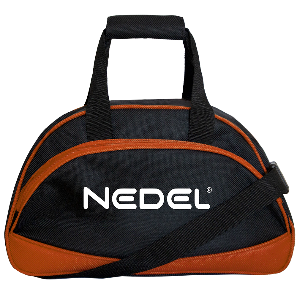 Alça: de mão com 22,5 cm, alça tiracolo transversal de 1,10 m com acessório plástico, regulador e pegador